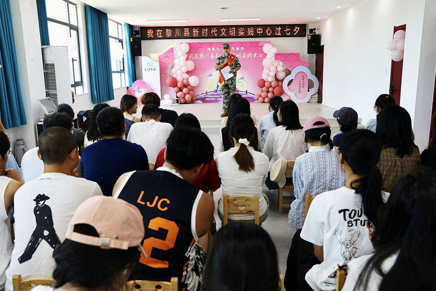 七夕前夕,黎川县举办了“缘聚七夕·新风相伴”主题活动。“中国好人”“老班长警务队”队长王志刚在现场分享了自己践行文明新风、传递温暖大爱的经历:“我们虽然没有报酬,但收获了比金钱更珍贵的东西——那就是乡亲们一句‘有事找老班长’的信任!”他还结合自己牵头组建“老班长警务队”的历程,鼓励大家积极加入志愿服务队伍,“一双手能扶起跌倒的老人,一百双手就能托起整座山乡。如今,我们的队伍已从最初的十几人,发展到了全县140多人。”