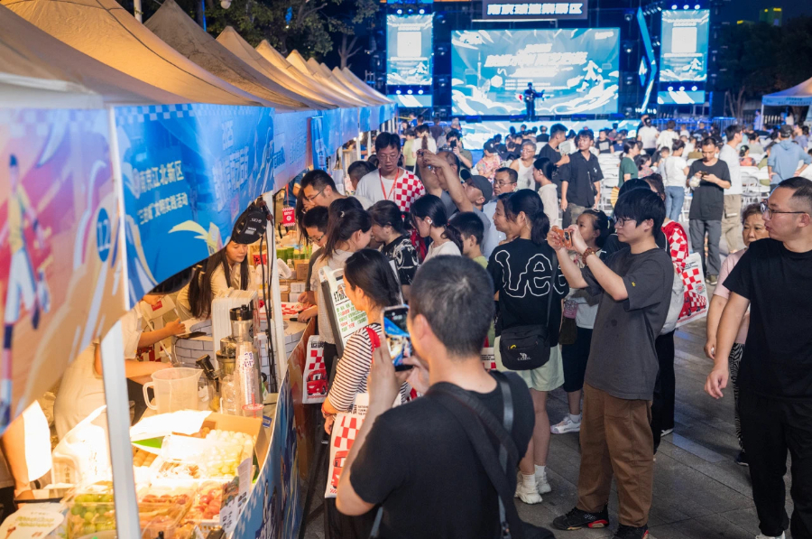 在南京市雨花台区虹悦城东广场,巨大的高清屏幕同步直播着“苏超”激战,场外的“三进城”主题市集人潮涌动。溧水半山果蔬、富华果林等家庭农场以及溧水供销社展台被围得水泄不通。溧水区供销社合作事业科负责人郭倩介绍,来自溧水的葡萄、梨、无花果等精品水果很受欢迎,首批50公斤溧水无花果一天内便被抢购一空。